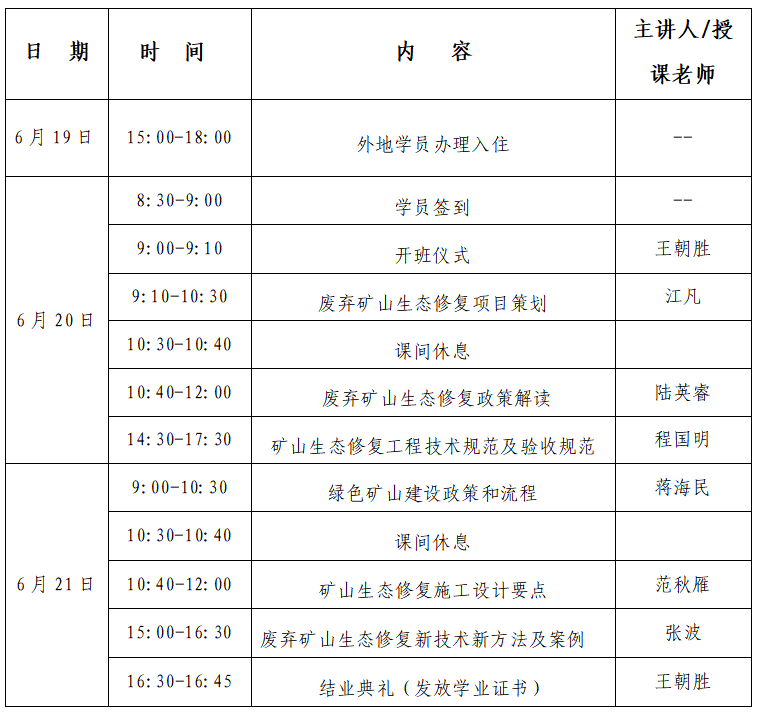 为发挥协会服务会员的作用,进一步提升行业从业人员业务水平和能力素质,促进各相关单位在矿山生态修复中发挥更大作用,助推壮美广西建设,协会决定举办矿山生态修复业务培训班,现将有关事项通知如下: